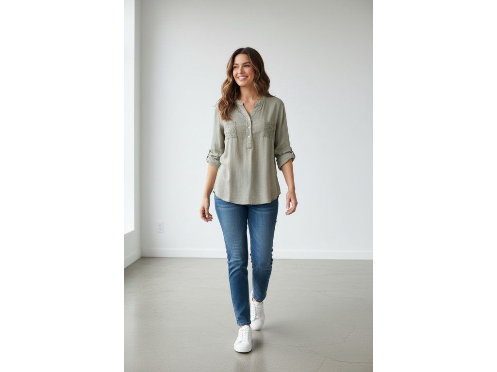 Košile khaki s dlouhým rukávem (913)