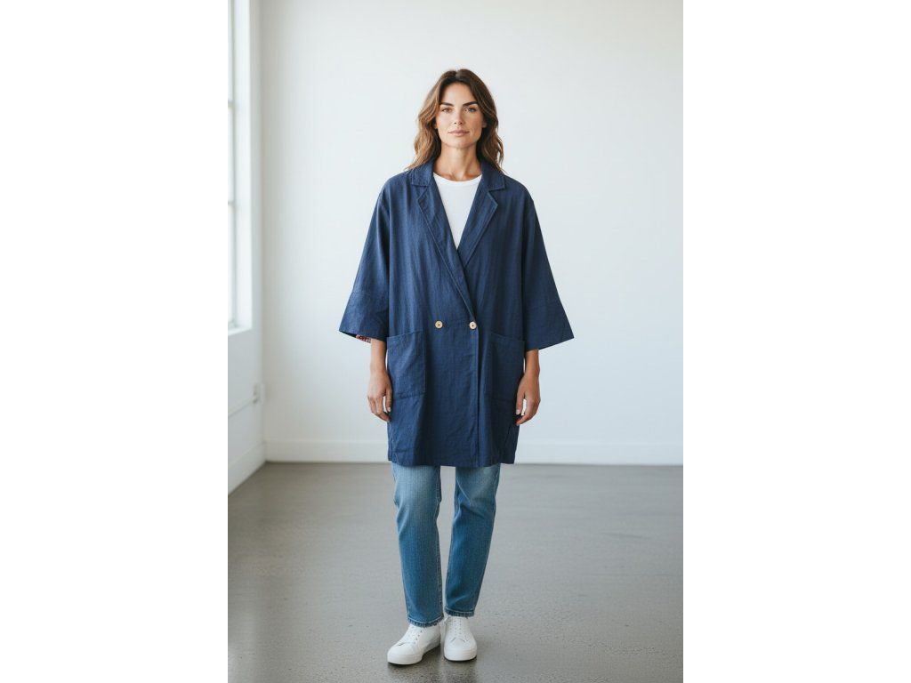 Tmavě modré dlouhé sako je elegantní volbou pro ženy, které hledají stylový a zároveň pohodlný kousek do svého šatníku. Díky kombinaci materiálů – 70 % bavlny a 30 % canapy – nabízí sako příjemný pocit při nošení, dobrou prodyšnost a zároveň dostatečnou pevnost. S délkou 95 cm a obvodem přes prsa 112 cm ve velikosti S/M je vhodné pro různé typy postav, přičemž volnější střih zajišťuje komfort i při celodenním nošení. Tmavě modrá barva dodává saku univerzální vzhled, který snadno sladíte s dalšími kousky vašeho šatníku.