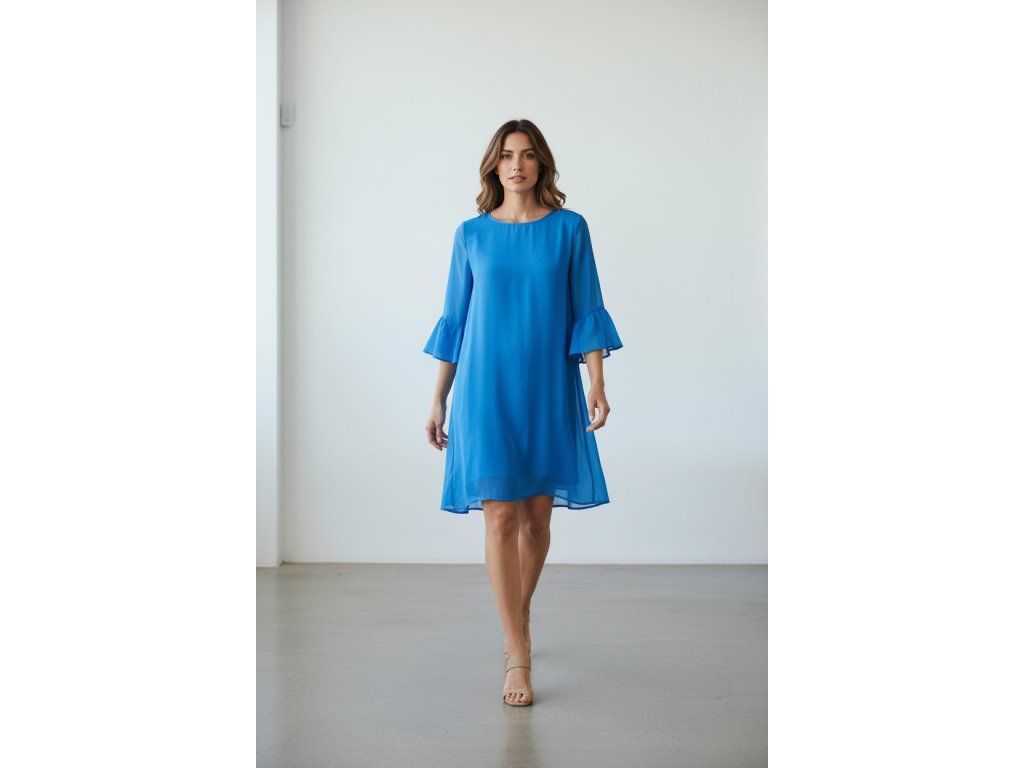 Objevte ztělesnění elegance v těchto blankytně modrých šatech z pravého hedvábí. Volný, lichotivý střih do A zajišťuje maximální pohodlí a svobodu pohybu, zatímco lehký a prodyšný materiál je ideální volbou pro teplejší dny. Výjimečnost modelu dodávají tříčtvrteční rukávy zakončené jemným volánem, které vnášejí do designu prvek romantiky a sofistikovanosti. Kulatý výstřih decentně podtrhuje linii krku a ramen. Šaty jsou navrženy tak, aby decentně zakryly případné nedokonalosti postavy a zároveň působily velmi žensky.