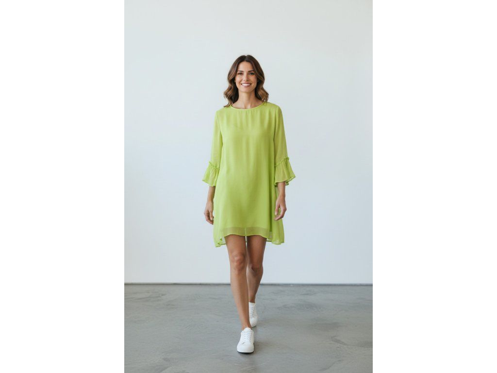 Objevte eleganci a pohodlí v těchto nádherných šatech ve svěžím odstínu zelené. Tento model je vyroben z jemné směsi s podílem hedvábí, která zajišťuje nejen luxusní vzhled, ale i výjimečnou lehkost a prodyšnost při nošení. Volný střih ve tvaru písmene A lichotí každé postavě a poskytuje maximální volnost pohybu. Šaty mají tříčtvrteční rukávy zakončené decentním volánem, který jim dodává romantický a ženský nádech. Díky neprůhledné spodničce se nemusíte obávat průsvitnosti a můžete si užívat naprostého komfortu po celý den.