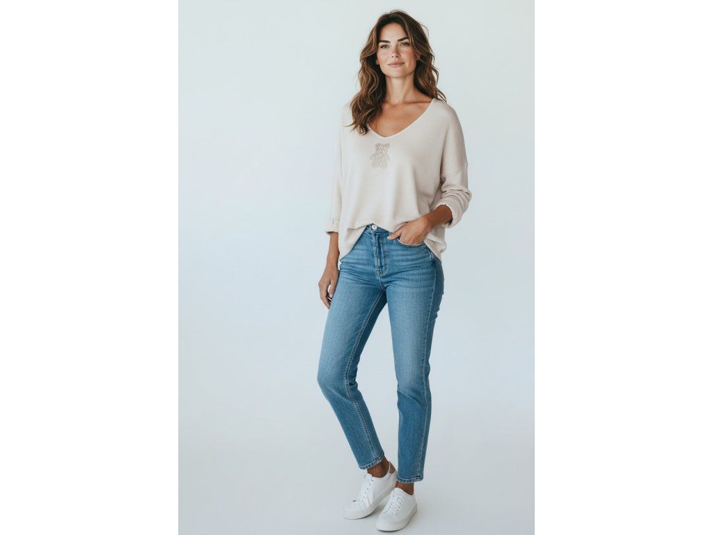 Svetr béžový do V one size.
