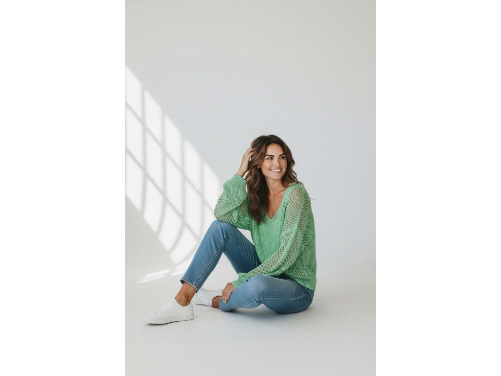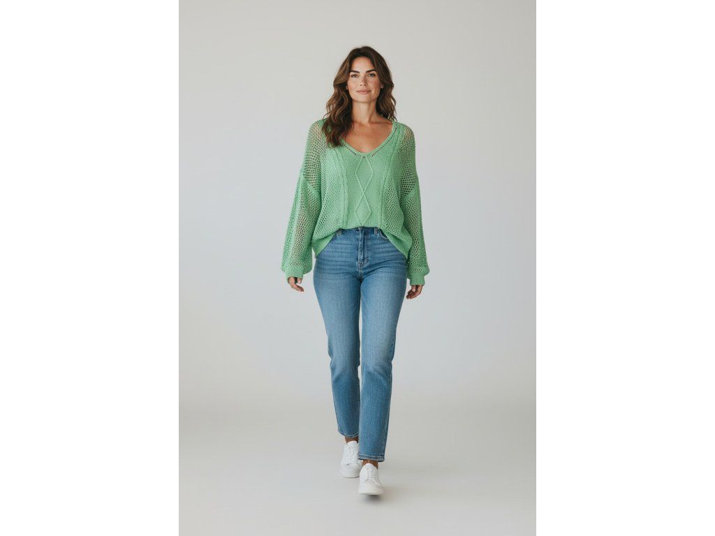 Svetr zelený děrovaný one size.